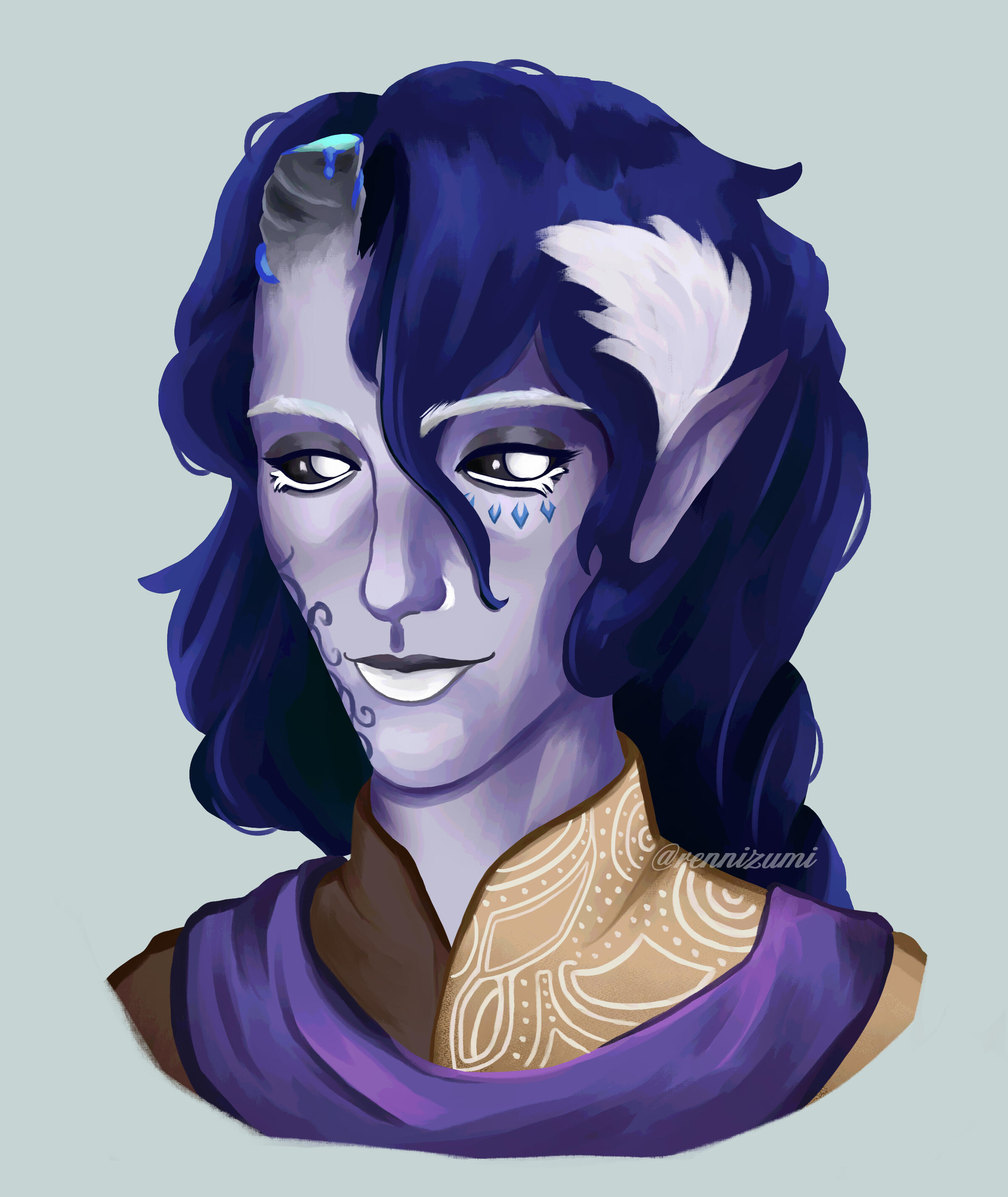 I own original copyright and ownership of all work I produce, and as such reserve the right to post, reproduce, display and share the work to all of my social media platforms and portfolios. I also reserve the right to use all work as examples and advertisement of my services.You, the Client, receive exclusive rights of work produced for personal use. Personal use includes social media avatars and banners, personal websites, character sheets and galleries. It cannot be used for sale redistribution any form of commercial use.Work produced by I, the Artist must NOT be used for AI training/learning, NFTs or any alternative form of profit or exploitation.Clients may not claim works as their own, all I ask is I receive proper credit as the Artist, RennIzumi.